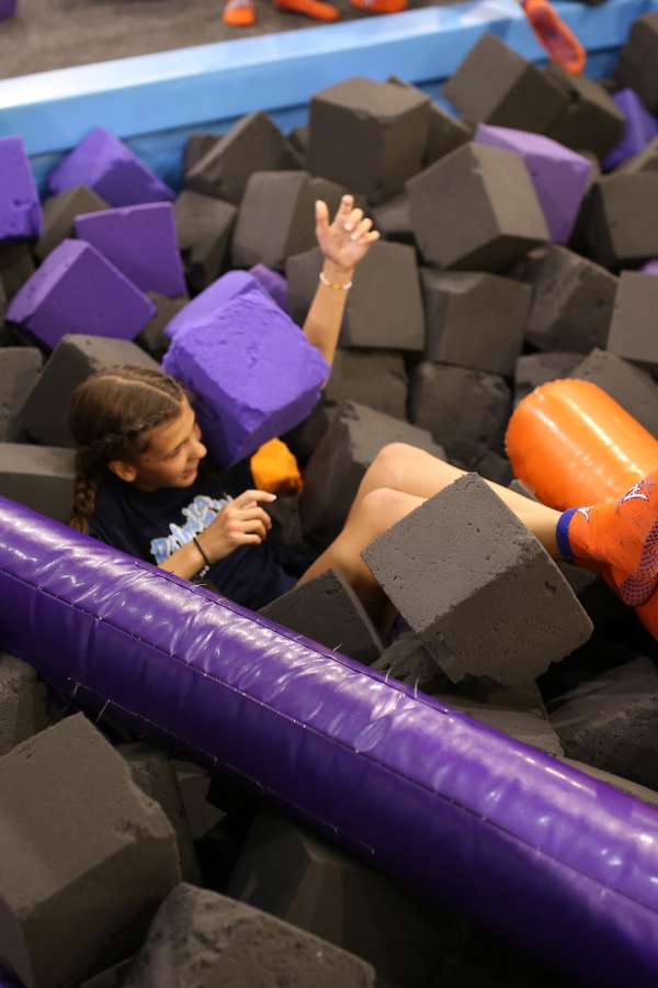El foso de foam es una zona acolchada llena de cubos de espuma donde puedes: